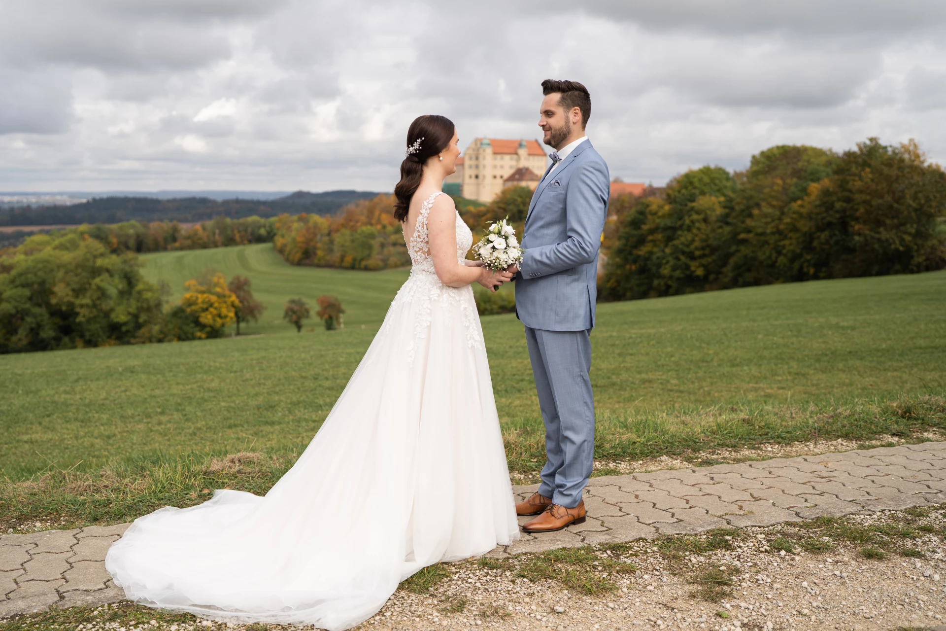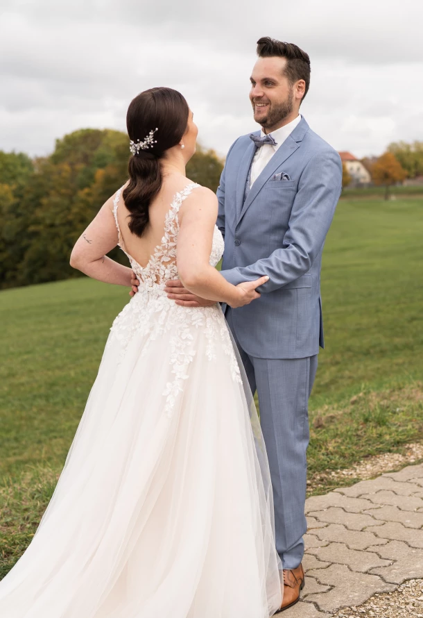 Der First Look von Marita und Marcel fand ganz bewusst inZweisamkeit mit Blick auf das Schloss Kapfenburg statt. In ruhiger Atmosphäre hat der Bräutigam seine Braut zum ersten mal in ihrem traumhaft schönen Brautkleid gesehen. Dieser emotionale Moment voller Vorfreude, Liebe und echter Gefühle durfte ich ganz natürlich einfangen. Nach dem First Look ging es auf die Kapfenburg.