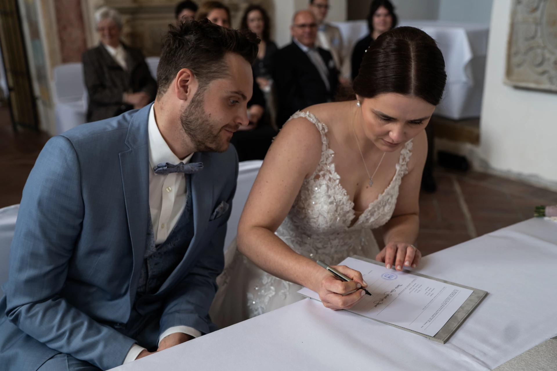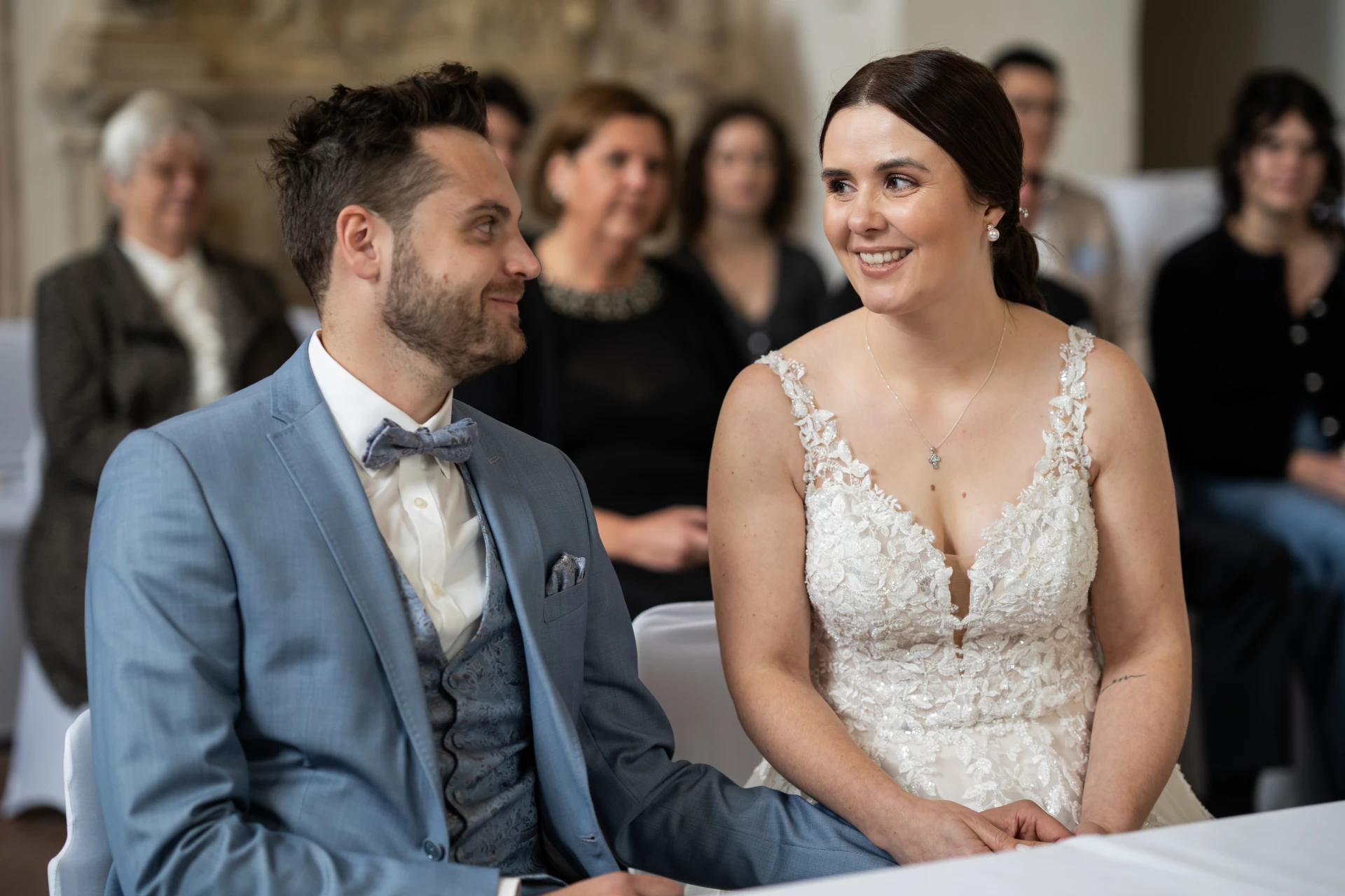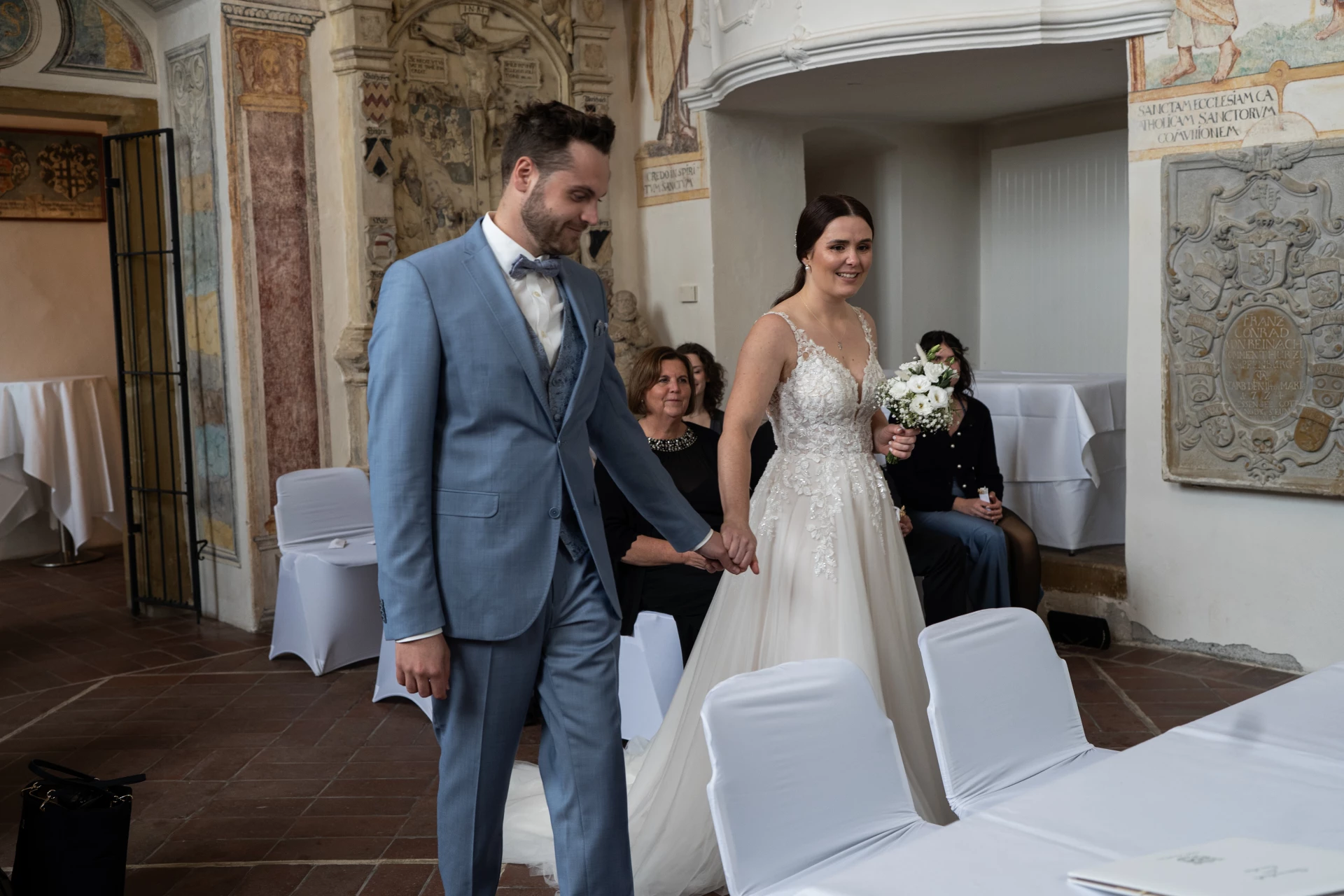 In der wunderschönen Hauskapelle auf Schloss Kapfenburg gaben sich Marita und Marcel zum ersten mal ihr JA-Wort. Die intime Atmosphäre, das sanfte Licht und die Nähe zu den wichtigsten Menschen sorgten für eine sehr emotionale und persönliche Trauung. Hier wurde gelacht, geweint und voller Liebe „Ja“ gesagt.
