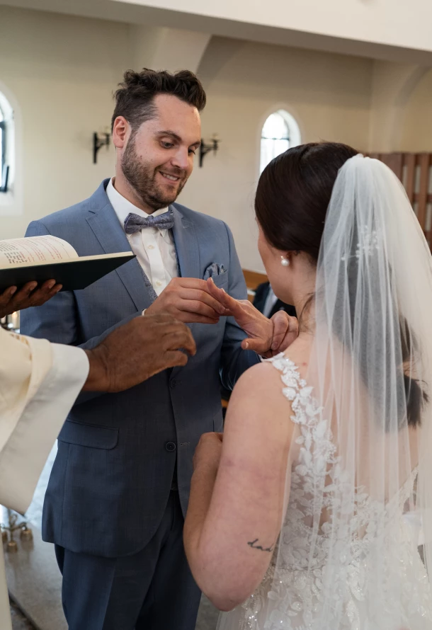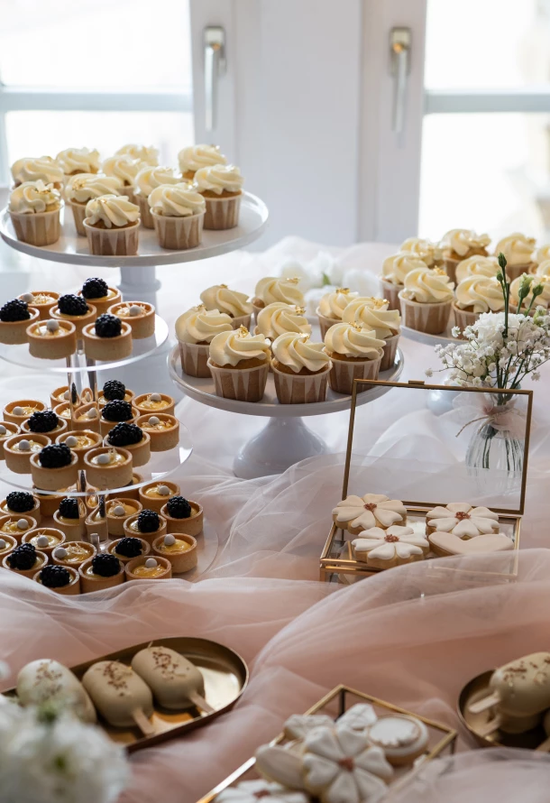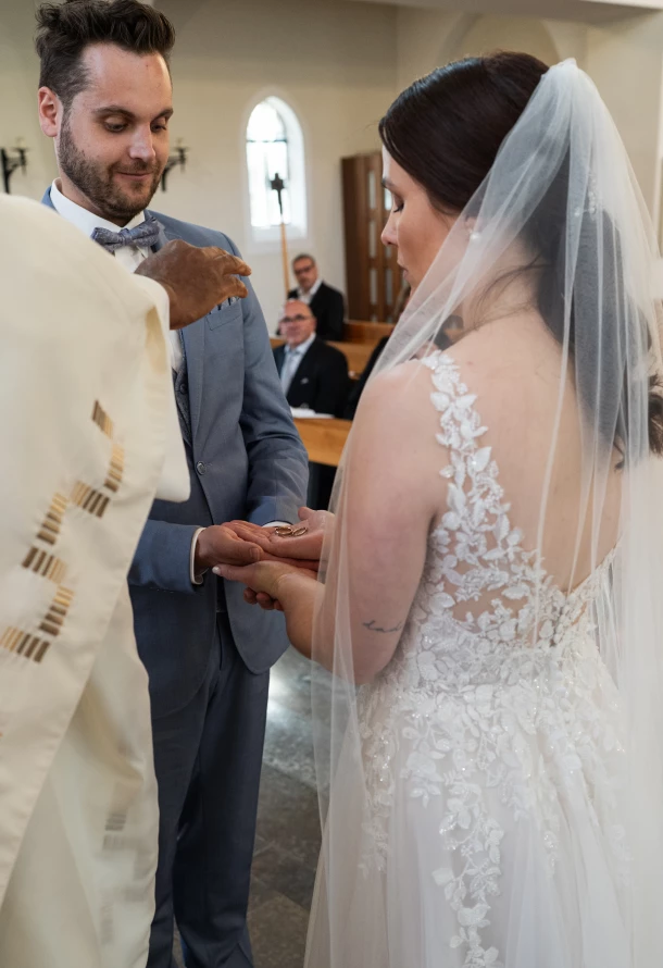 Nach der standesamtlichen Trauung ging es weiter zur kirchlichen Trauung in Hülen. Auch hier war die Stimmung einzigartig, voller Vorfreude, Glück und tiefer Verbundenheit. Nach der Zeremonie wurde das Brautpaar von Familie und Freunden herzlich beglückwünscht. Die anschließende Hochzeitsfeier auf Schloss Kapfenburg fand im stilvollen Restaurant Fermata statt. Die elegante Location bot den perfekten Rahmen für einen entspannten und zugleich festlichen Hochzeitstag. Ein besonderes Highlight war der liebevoll gestaltete Candytisch von Zuckerzauber aus Heidenheim, der nicht nur optisch ein absoluter Hingucker war, sondern auch geschmacklich alle Gäste begeisterte.