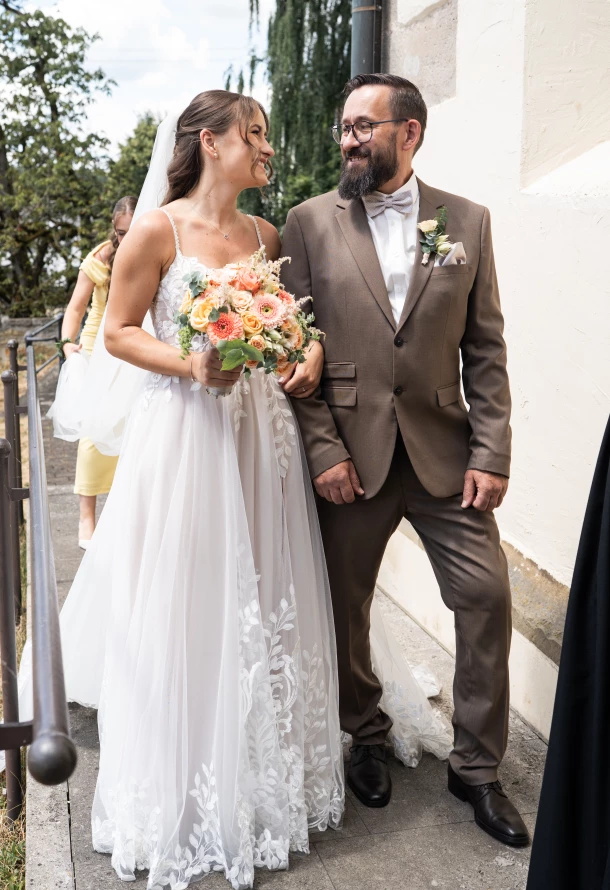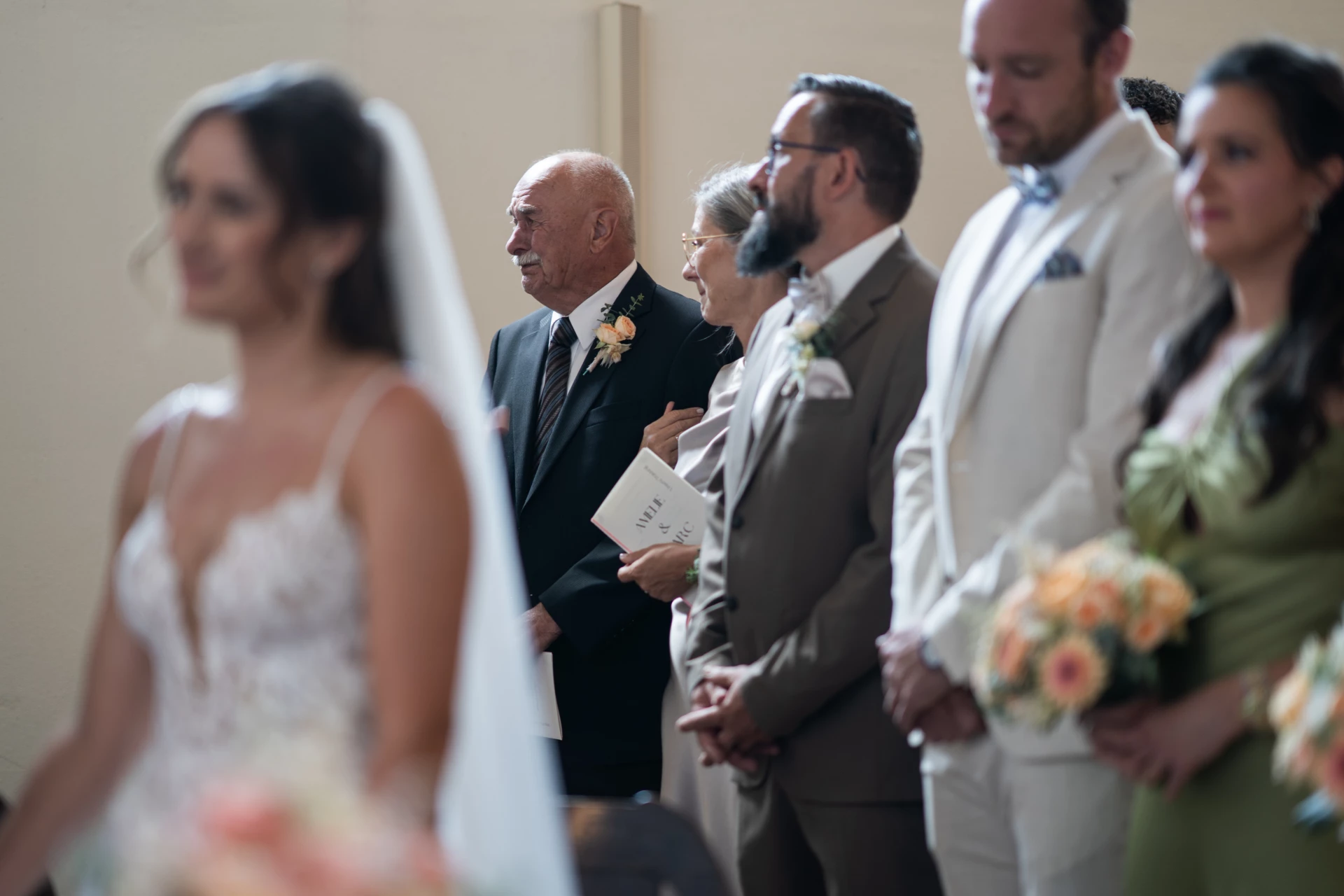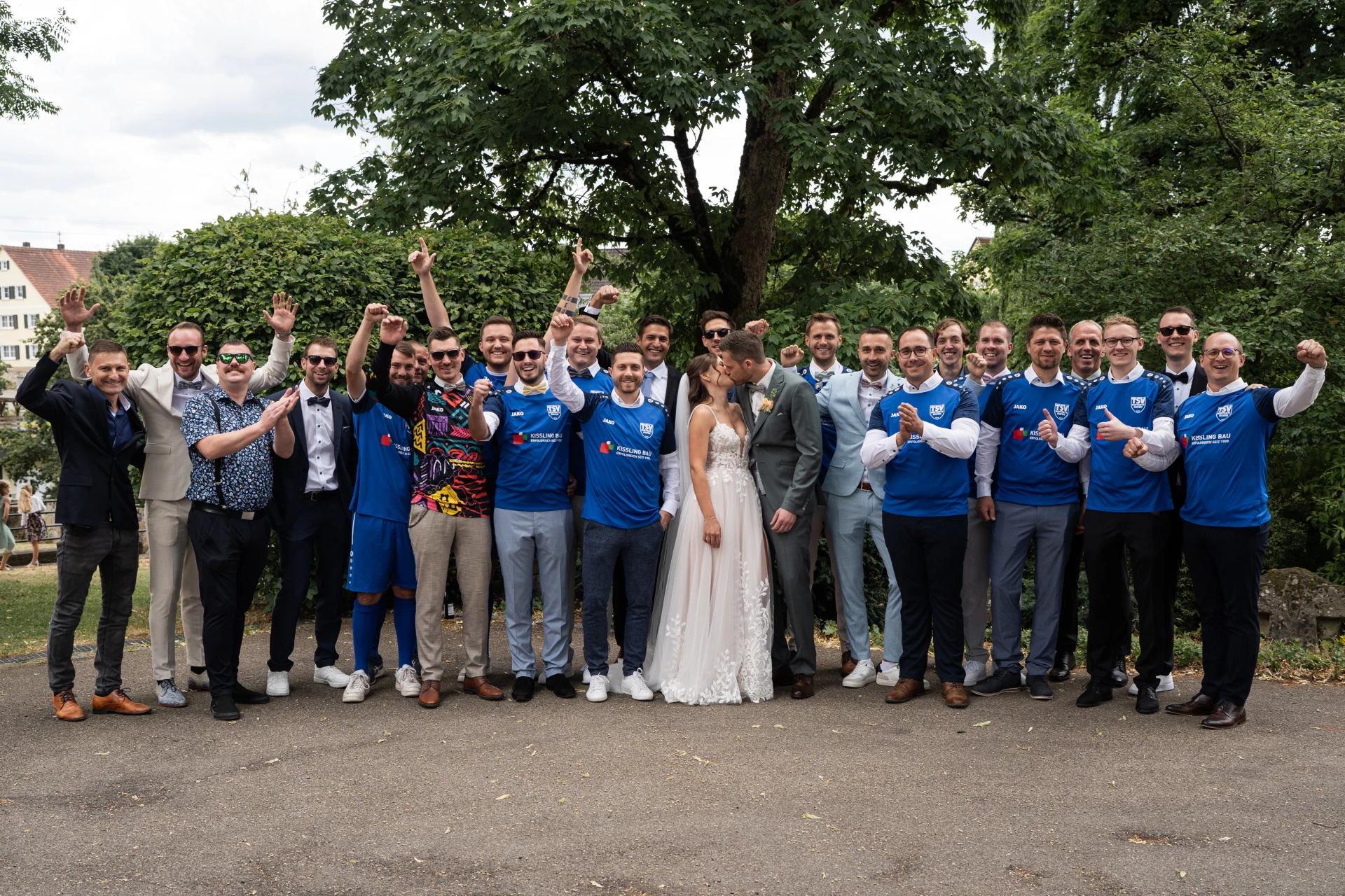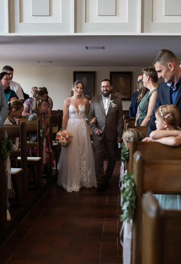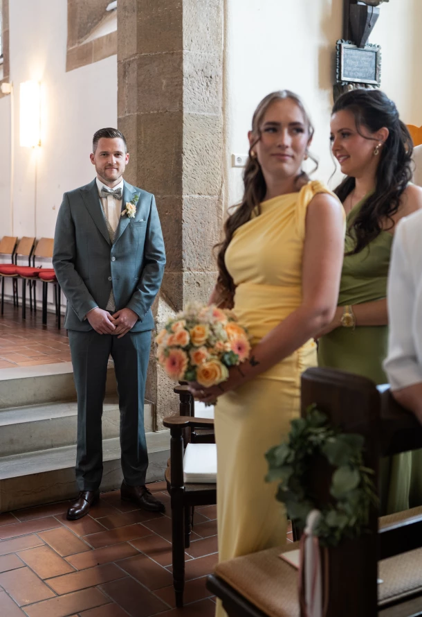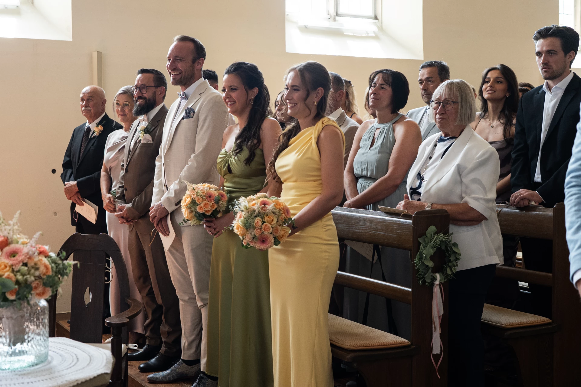 Danach gaben sich Amelie & Marc in der Kirche in Eschach ihr Ja-Wort, wo sie danach bei einem fröhlichen Sektempfang von all ihren Gästen beglückwünscht wurden.