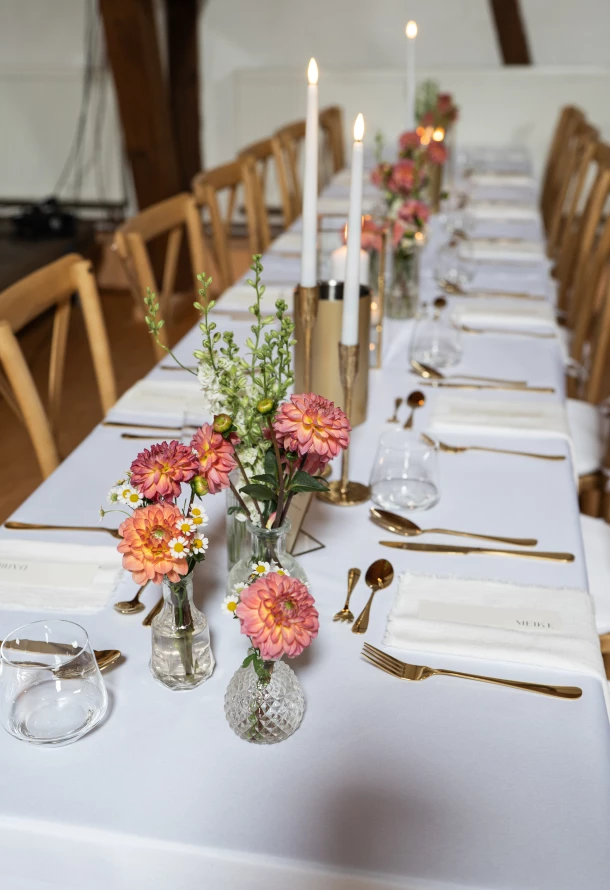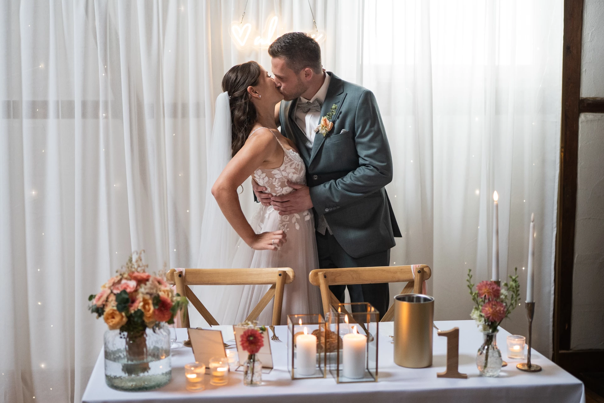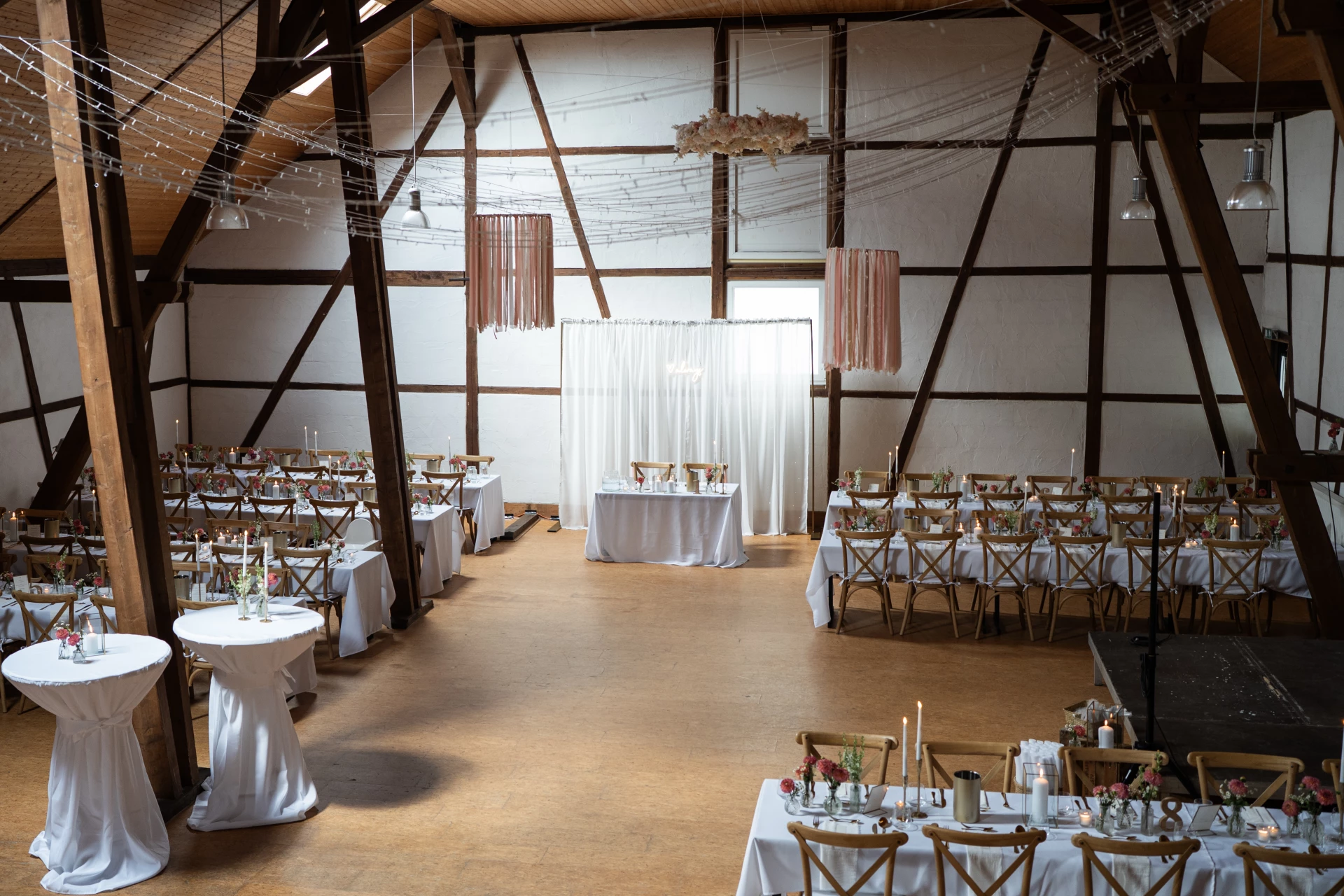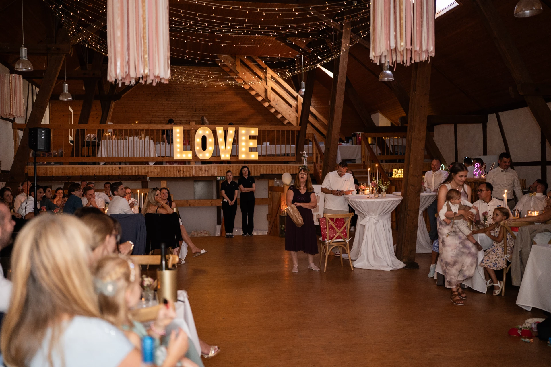 Die Festscheune war mit ganz viel Liebe zum Detail vom Brautpaar und der Familie mit Freunden am Vortag dekoriert worden.