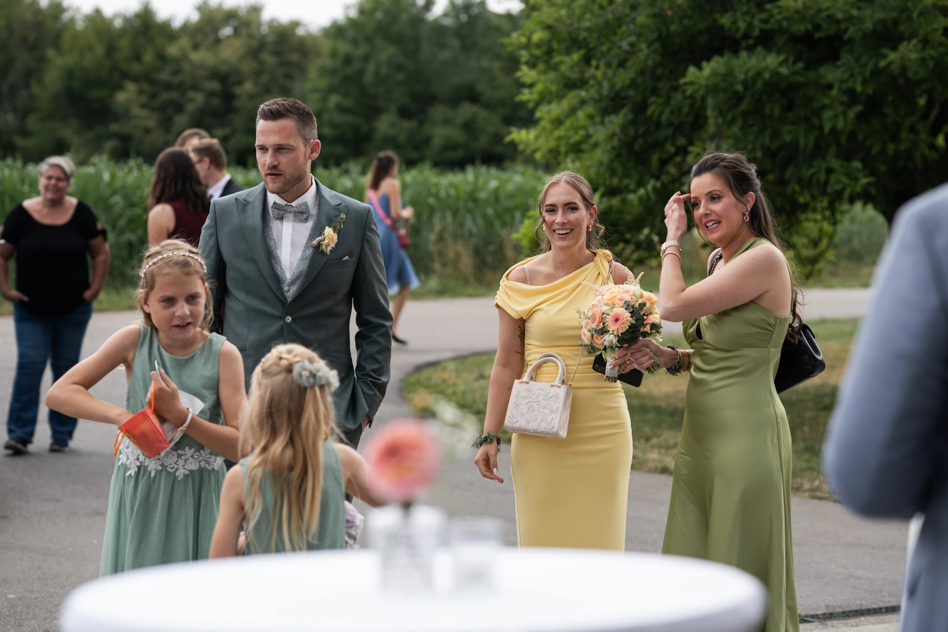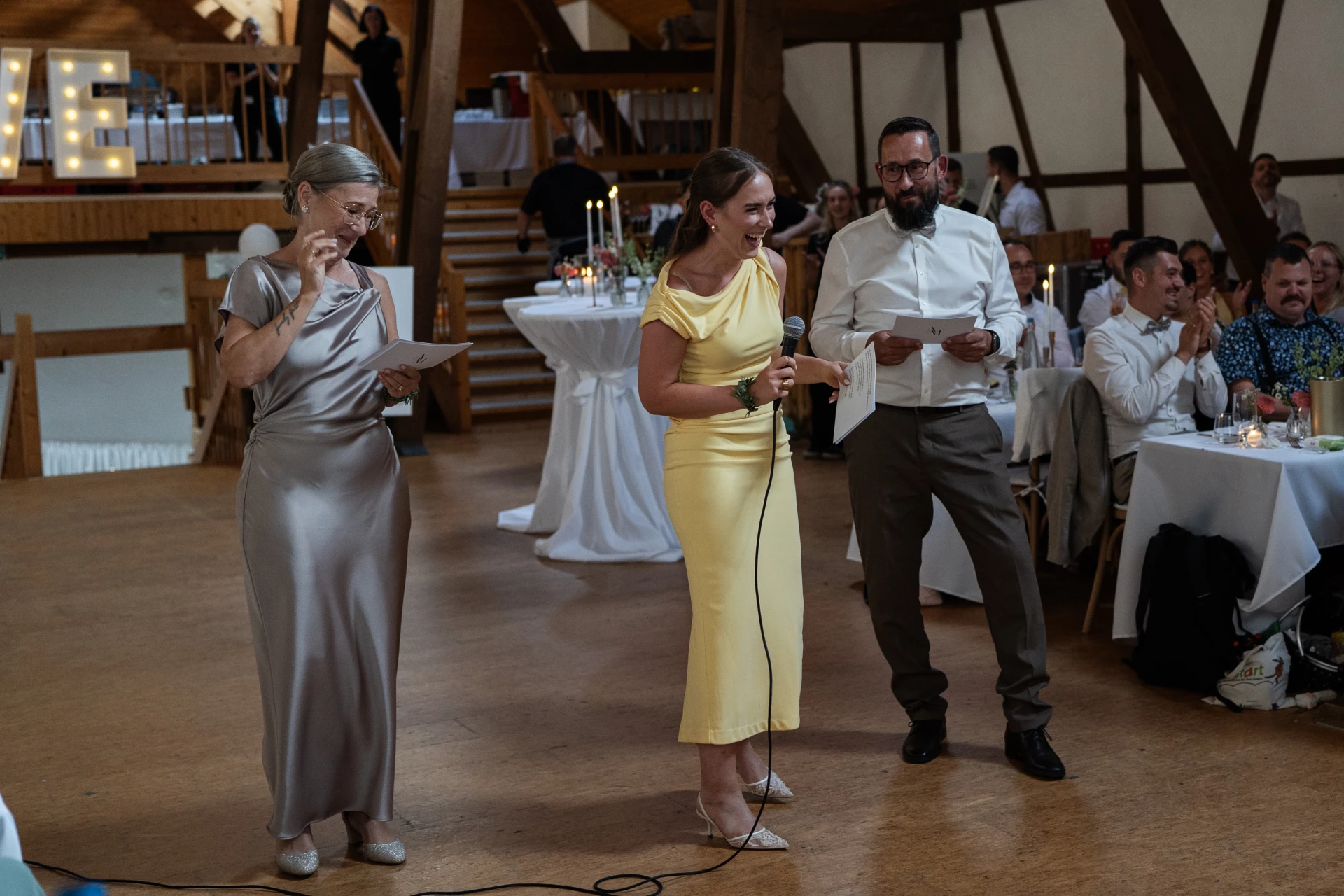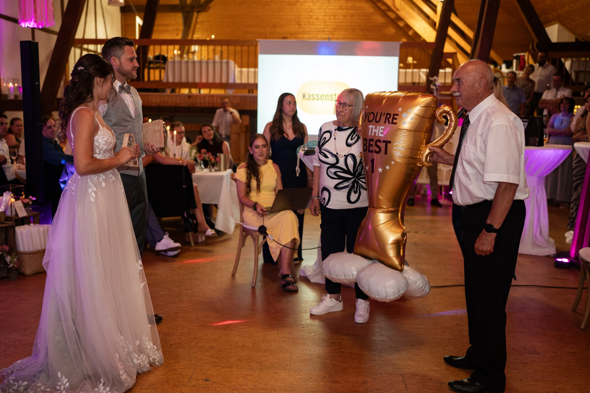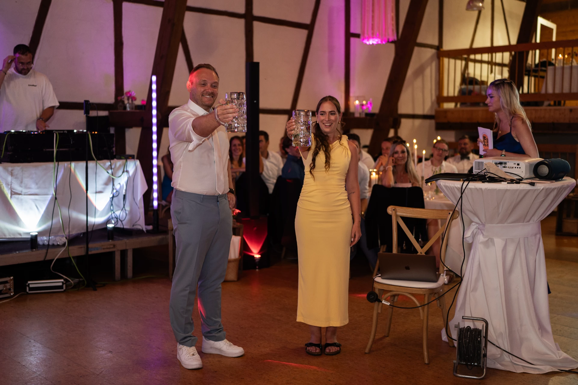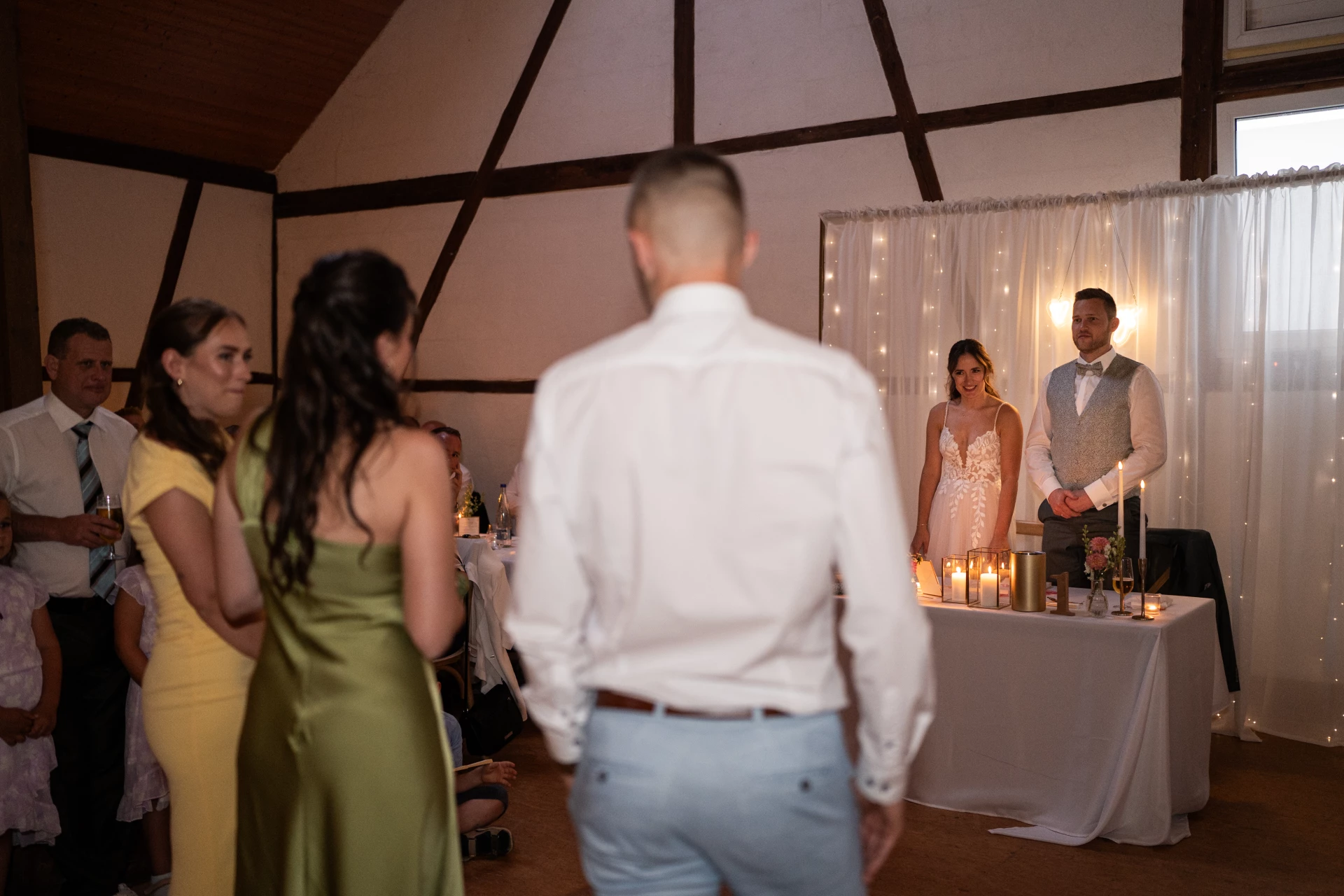 Der Nachmittag und Abend waren erfüllt von Herzlichkeit, Lachen und vielen Überraschungen. Familie und Freunde hatten einige liebevolle Programmpunkte und ein witziges Spiel für das Brautpaar vorbereitet.