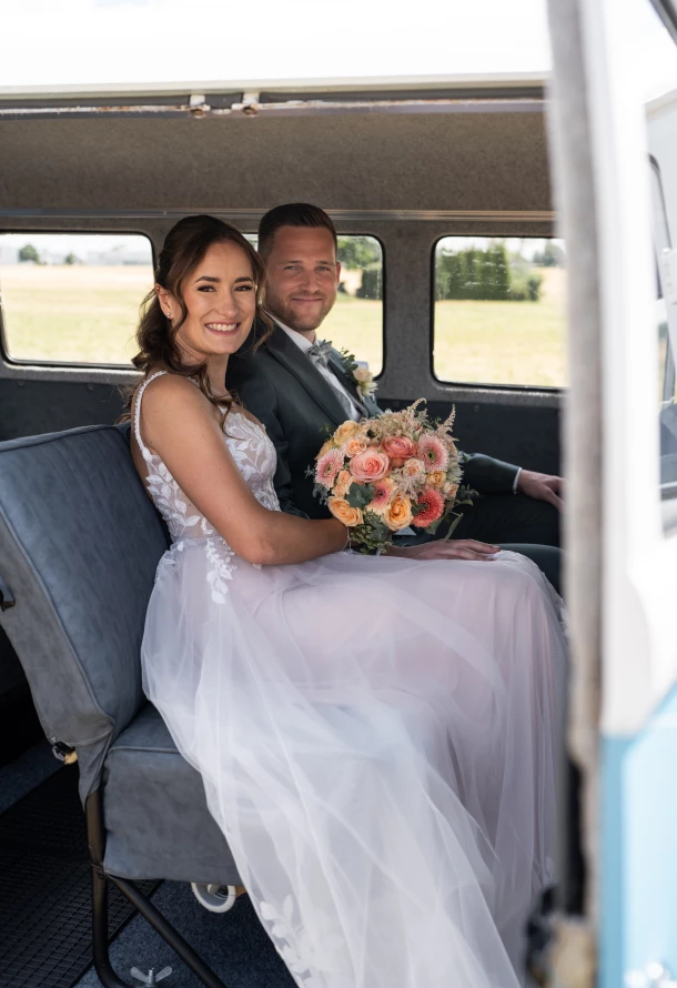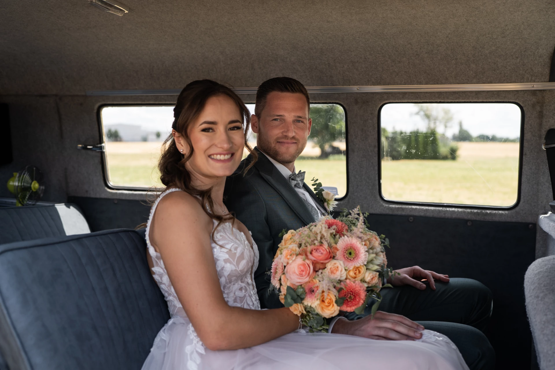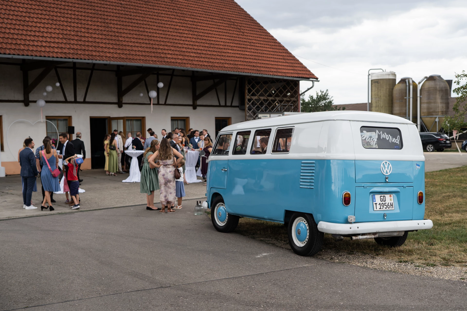 Im Anschluss ging es mit einem Autokorso zur Festscheune Hermannsfeld bei dem die Gäste mit einem Aperetif begrüßt wurden.
