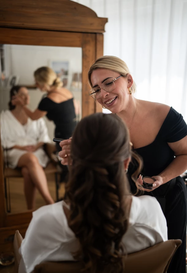 Das Getting Ready der Braut fand gemeinsam mit ihren Trauzeuginnen in gemütlicher Atmosphäre zu Hause bei den Eltern statt. Die Vorfreude der Braut Amelie war riesig und es wurde gelacht und geweint.