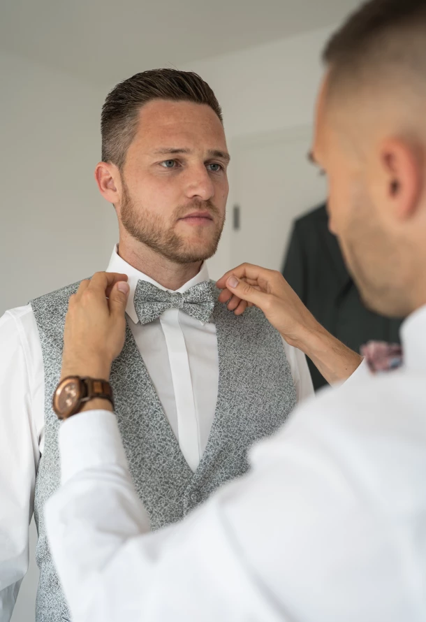 Der Bräutigam Marc hat sich gemeinsam mit seinem Trauzeugen daheim bei Weißwurst und Weizen auf den unglaublichen Tag vorbereitet und auch hier war die Aufregung sichtlich spürbar.