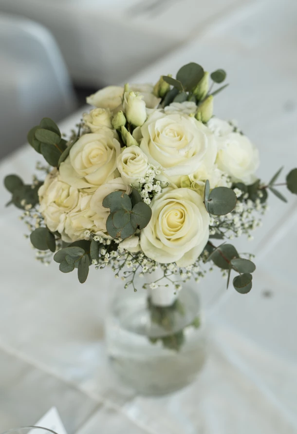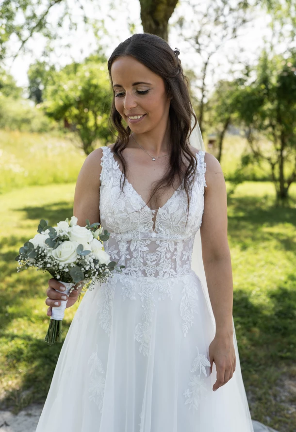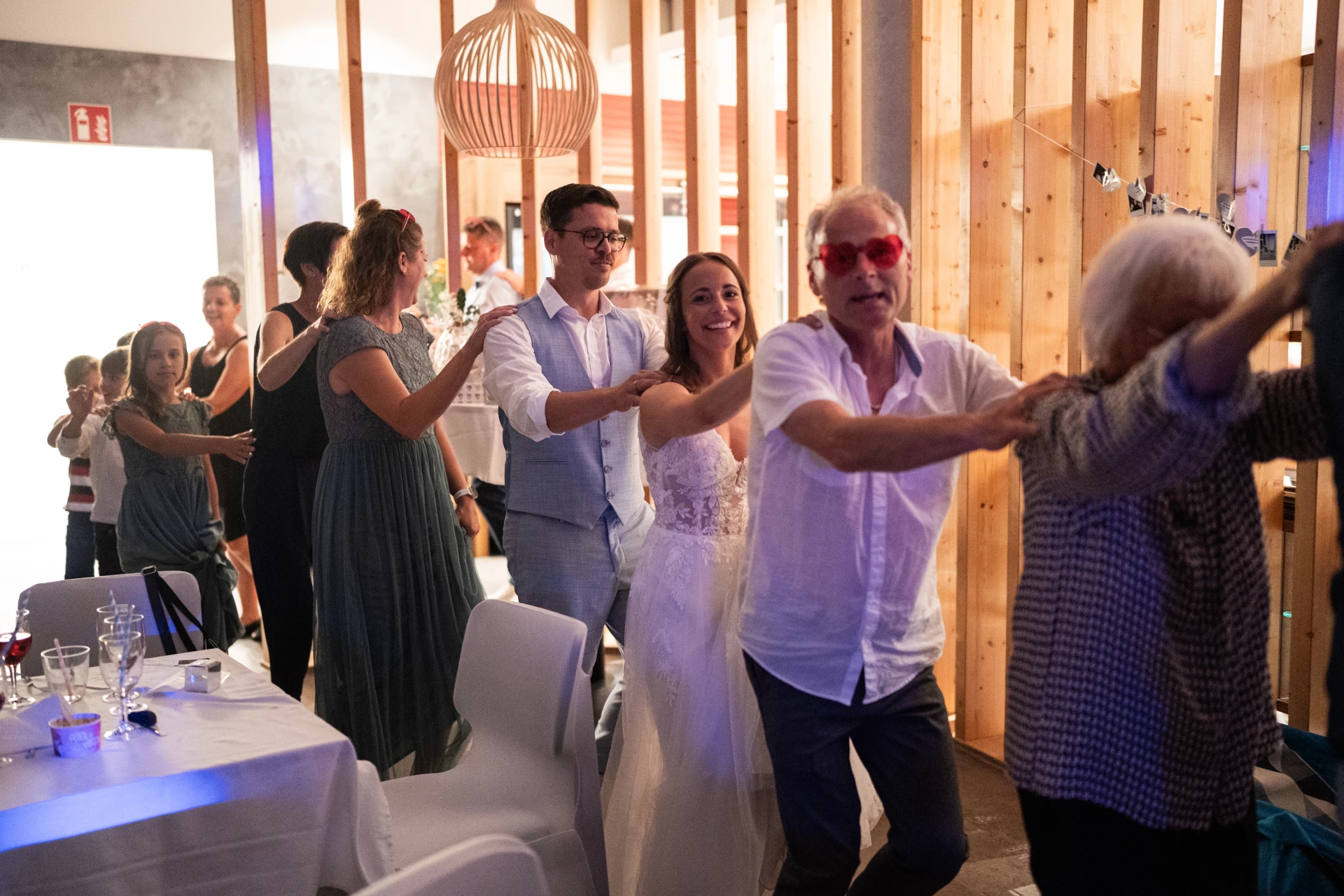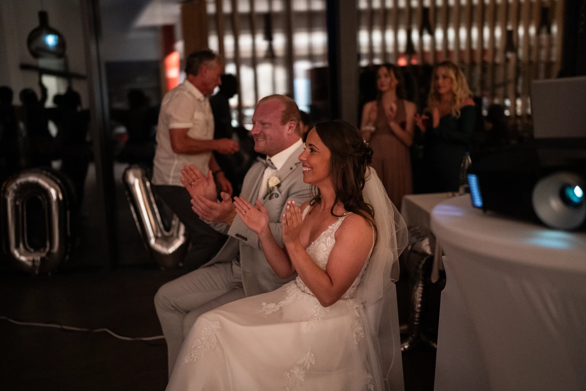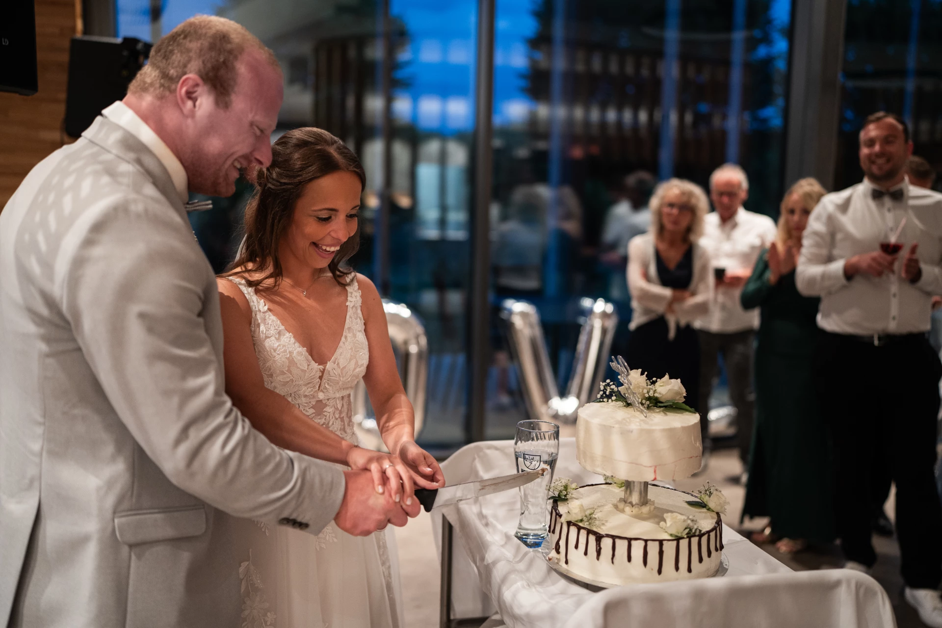 Das Brautpaar hatte die Location mit viel Liebe zum Detail dekoriert, sodass eine wunderschöne Atmosphäre entstand. Die Gäste wurden mit einem köstlichen Essen verwöhnt und mit dem ein oder anderen Kaltgetränk wurde die Stimmung immer gelassener. Das Brautpaar eröffnete die Tanzfläche mit einem klassischen Brautwalzer und als Überraschung des Abends kamen die Gardemädels der Braut noch für einen Auftritt vorbei. Die Stimmung war ausgelassen und fröhlich und das Brautpaar ließ sich sichtlich feiern.