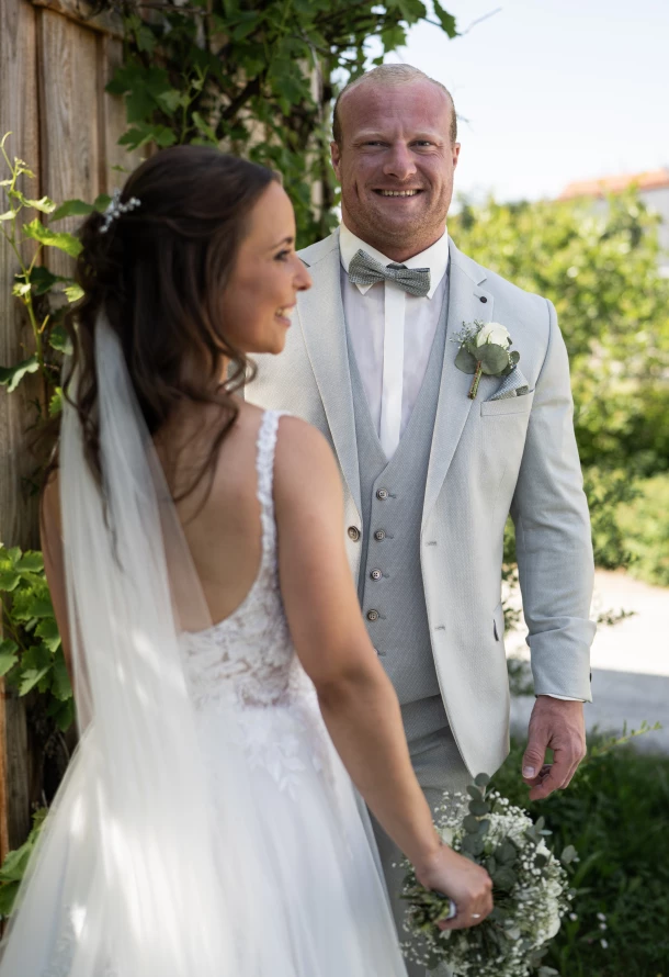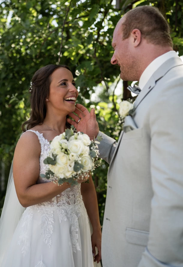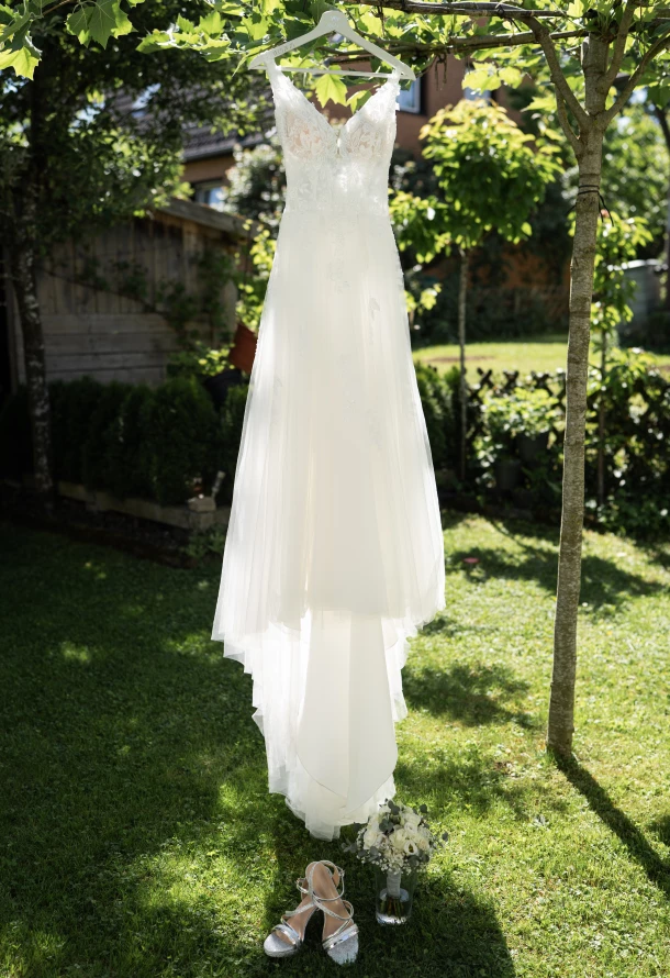 Ich durfte die beiden vom Getting Ready am Morgen bis zur ausgelassenen Feier am Abend fotografisch begleiten. Der Start in den Morgen war entspannt und wir konnten wunderschöne Bilder bei traumhaftem Wetter bereits im Garten aufnehmen.
