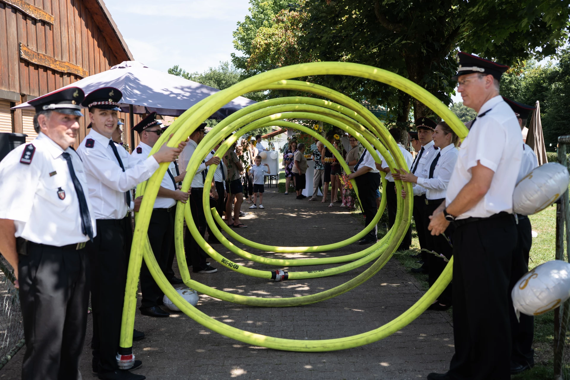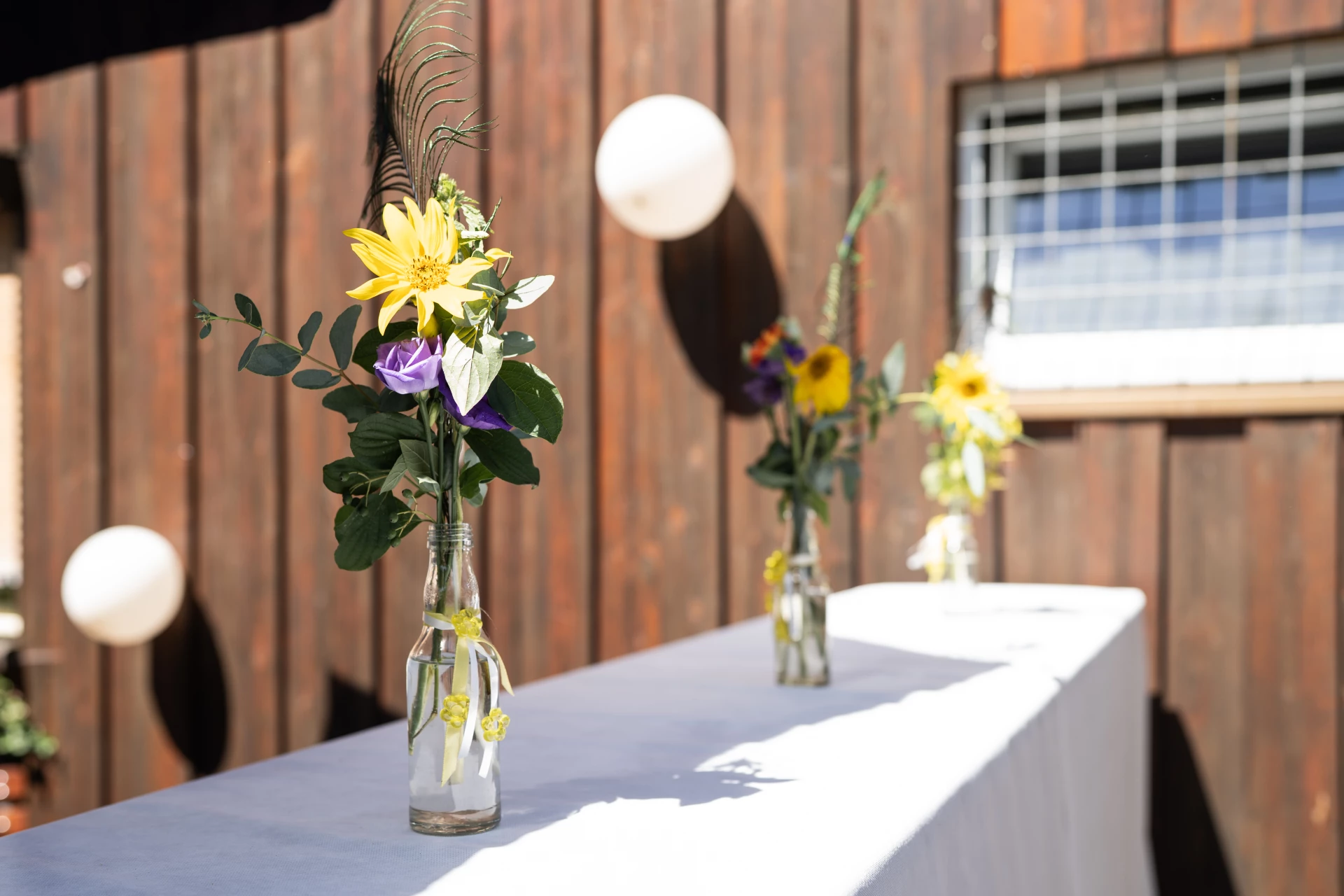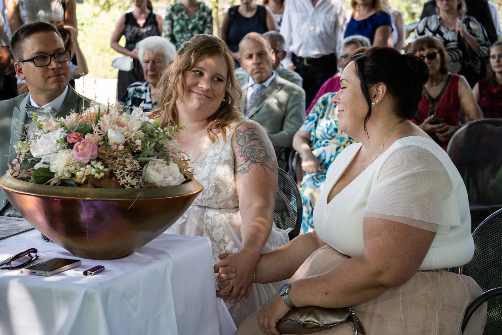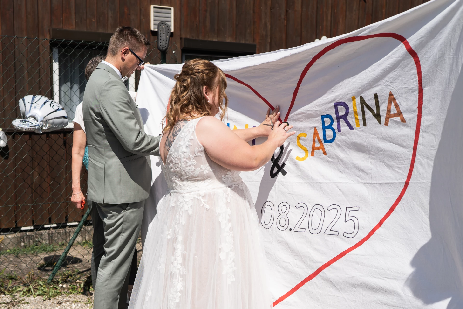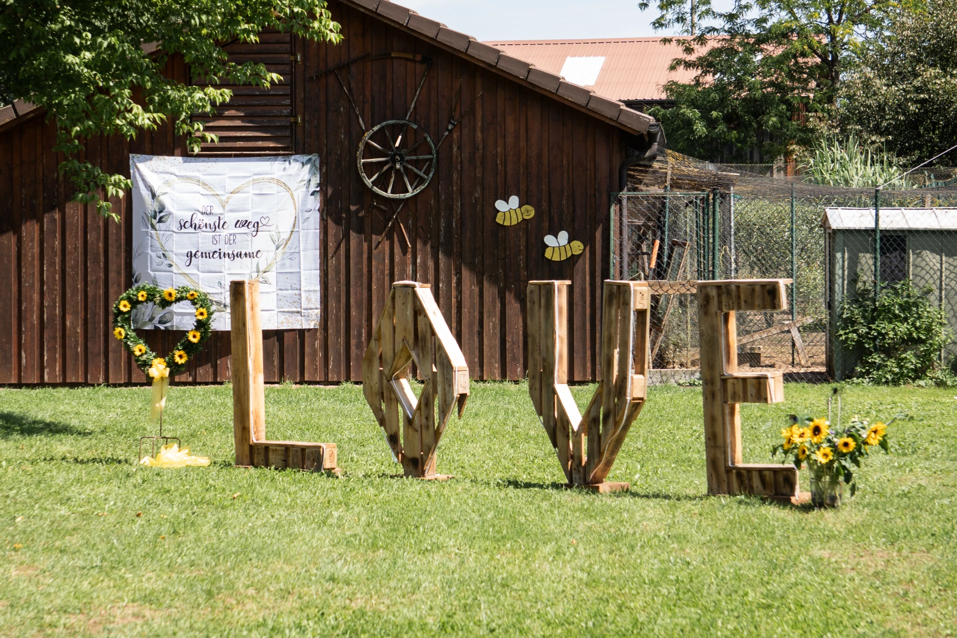 Die anschließende Trauung fand im freien Trauzimmer in Schwäbisch Gmünd im Grünen mit Blick auf das Rokokoschlösschen statt. Die freie Trauung war emotional, es wurde gelacht und die Freude war bei allen Gästen sichtlich spürbar. Die Gratulationen für das Brautpaar im Anschluss waren liebevoll und herzerwärmend. Beim gemeinsamen Sektempfang wurde mit Familie und Freunde auf das Brautpaar angestoßen.