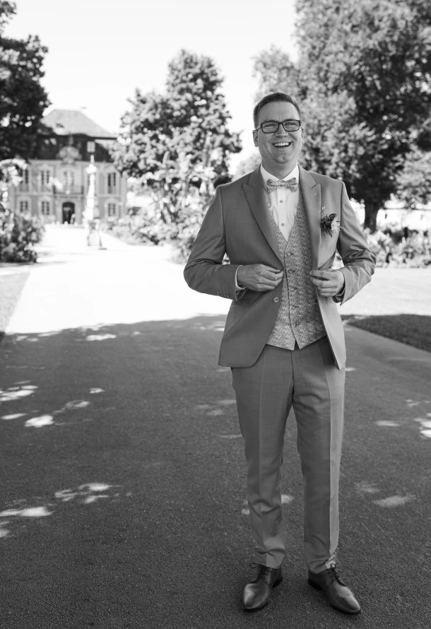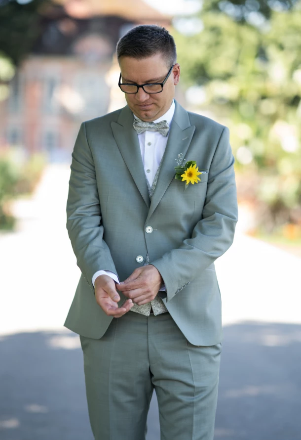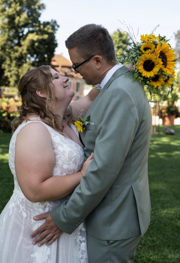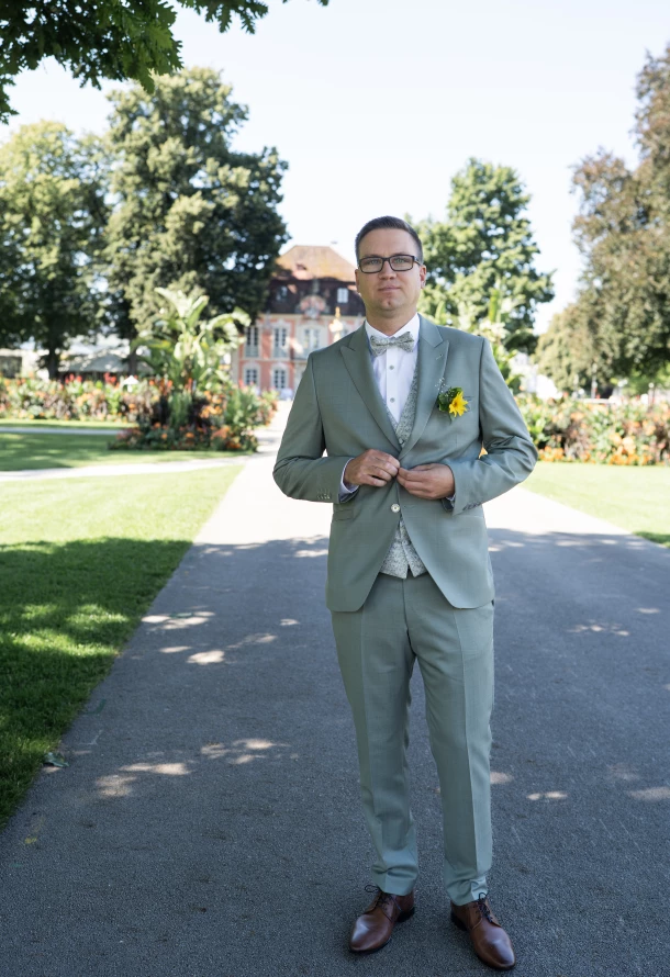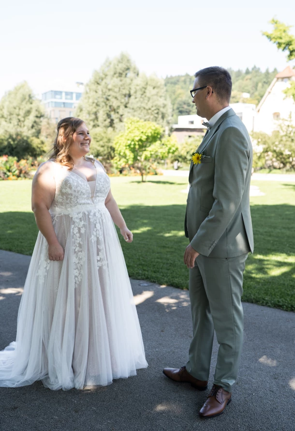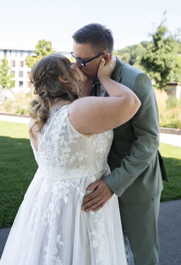 Im Anschluss an den First Look nutzen wir das traumhafte Sommerwetter um Brautpaarbilder im Stadtgarten und am Josefsbach einzufangen. Die grüne Umgebung, blühende Blumen und historische Bauwerke im Hintergrund waren eine perfekte Kulisse für wunderschöne Hochzeitsbilder.