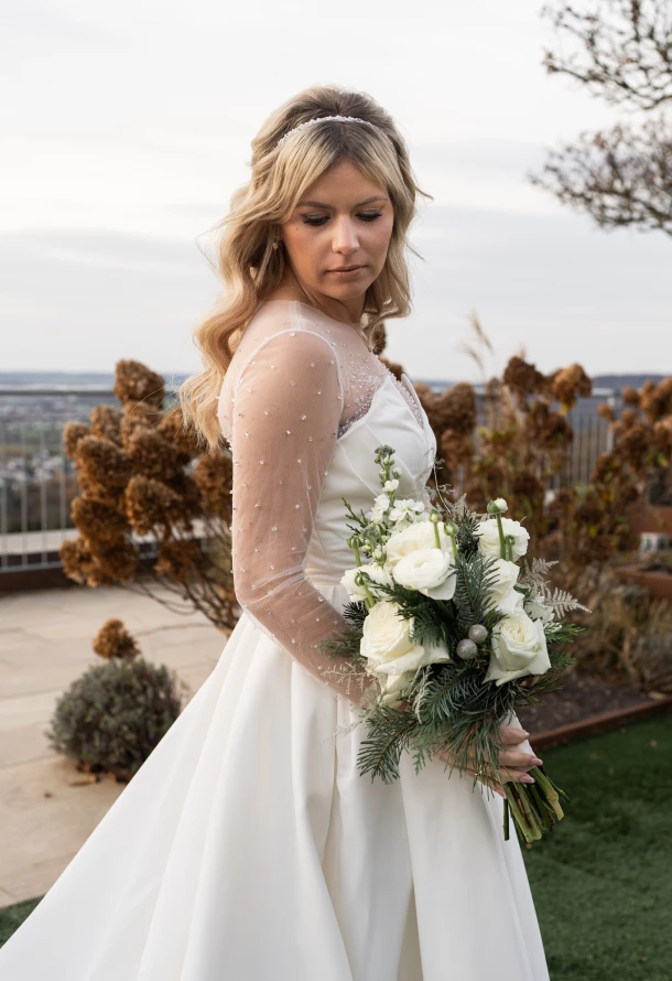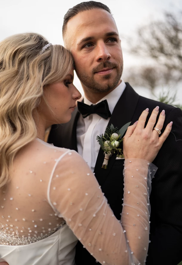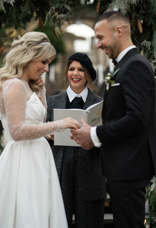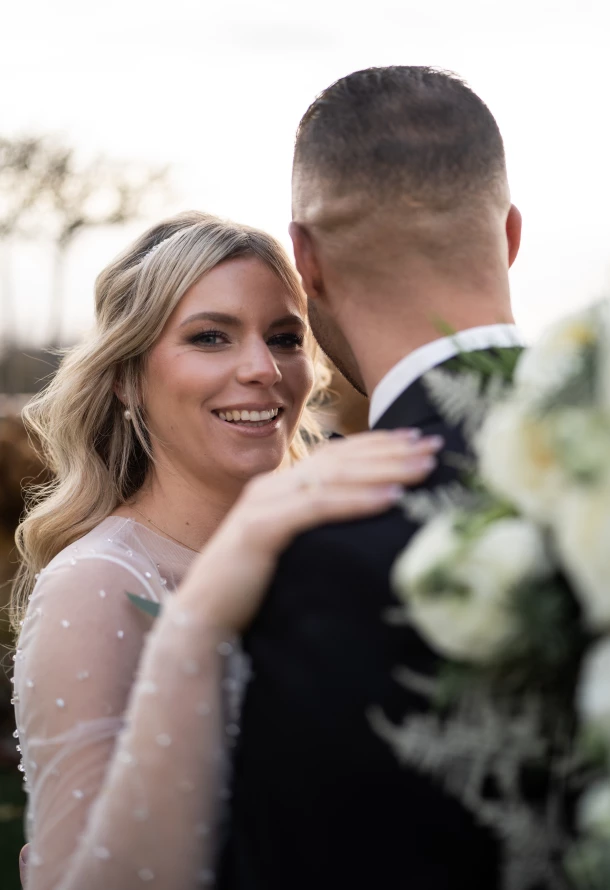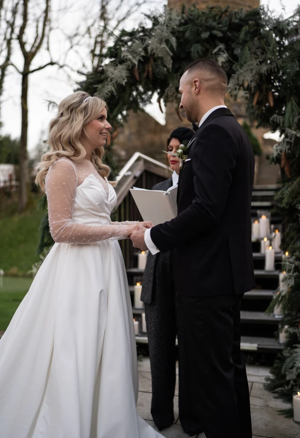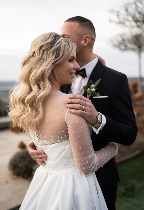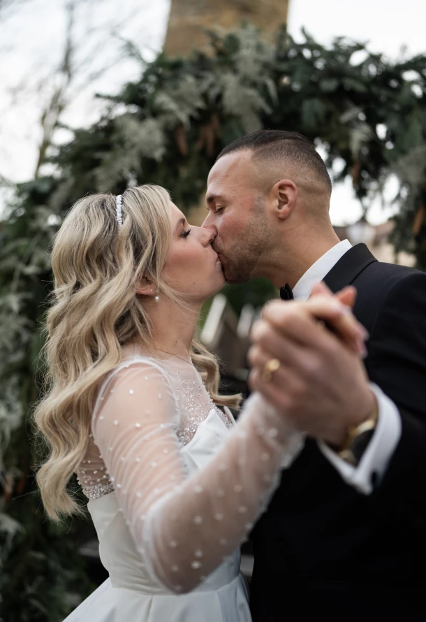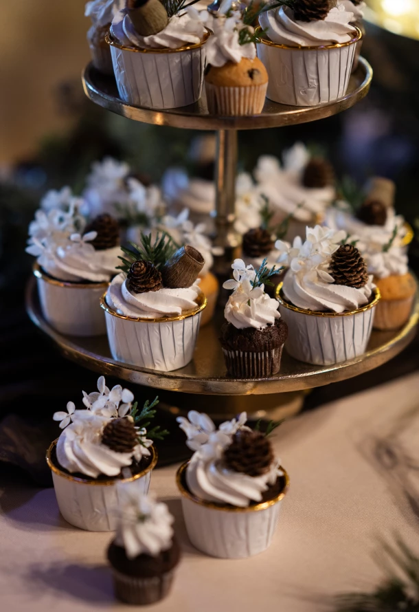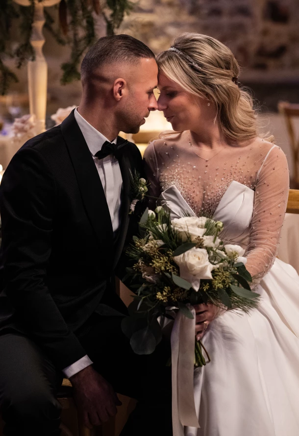 Bereits beim betreten der Location lag ein Zauber in der Luft. Die winterliche Dekoration mit Kerzen, Tannenzweigen und stilvollen Akzenten schuf eine festliche und zugleich gemütliche Atmosphäre, die perfekt zur Jahreszeit passte. Mit einem traumhaften Blick auf den Burgturm fand die freie Trauung unter freiem Himmel statt. Die Feier fand in der winterlich dekorierten Burgscheune statt.